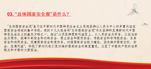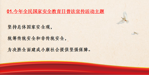 今天是我國(guó)第五個(gè)全民國(guó)家安全教育日,實(shí)現(xiàn)中華民族偉大復(fù)興的中國(guó)夢(mèng),保證人民安居樂(lè)業(yè),國(guó)家安全是頭等大事?!翱傮w國(guó)家安全觀”是什么,今年的活動(dòng)主題是什么?速來(lái)了解。